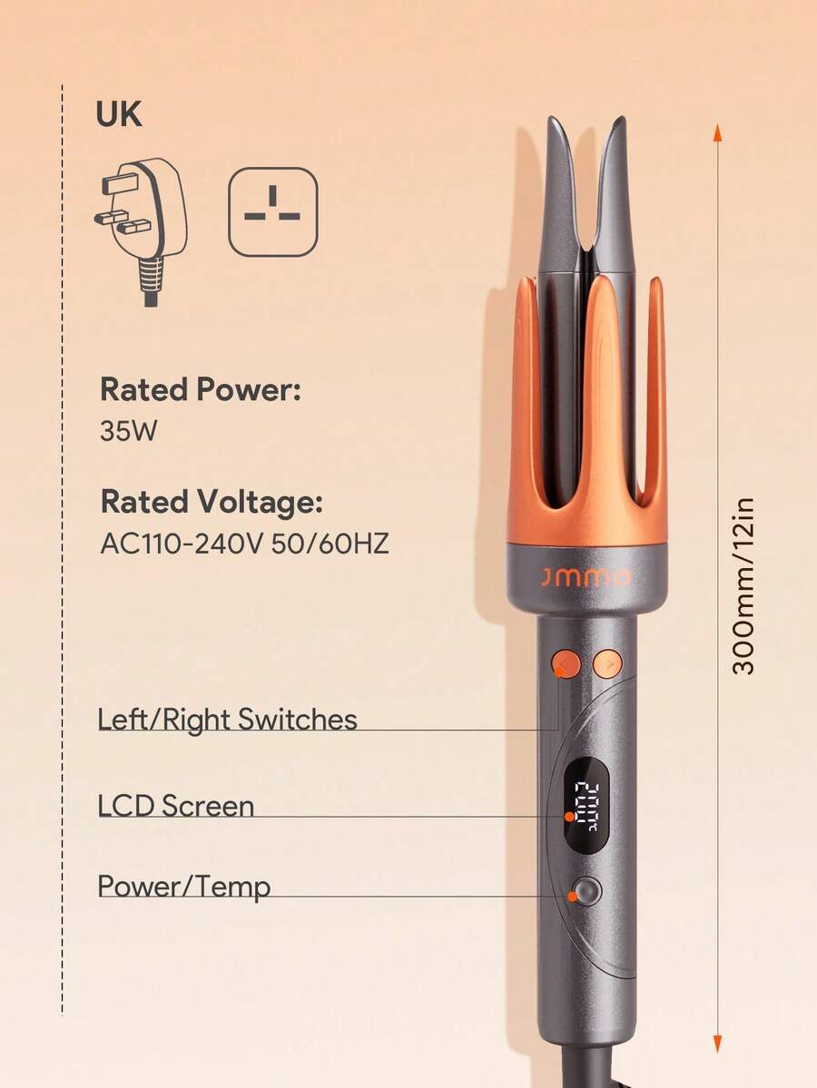 مجعد الشعر بلمسة واحدة، جهاز تجعيد شعر كهربائية أوتوماتيكية، تجعيد موجي كبير 32 مم، 4 درجات حرارة قابلة للضبط، سخان سريع والدوران ثنائي الاتجاه، إيقاف تلقائي، مقاوم للحروق، تجعيد الشعر لتصفيف الشعر – قابس بريطاني