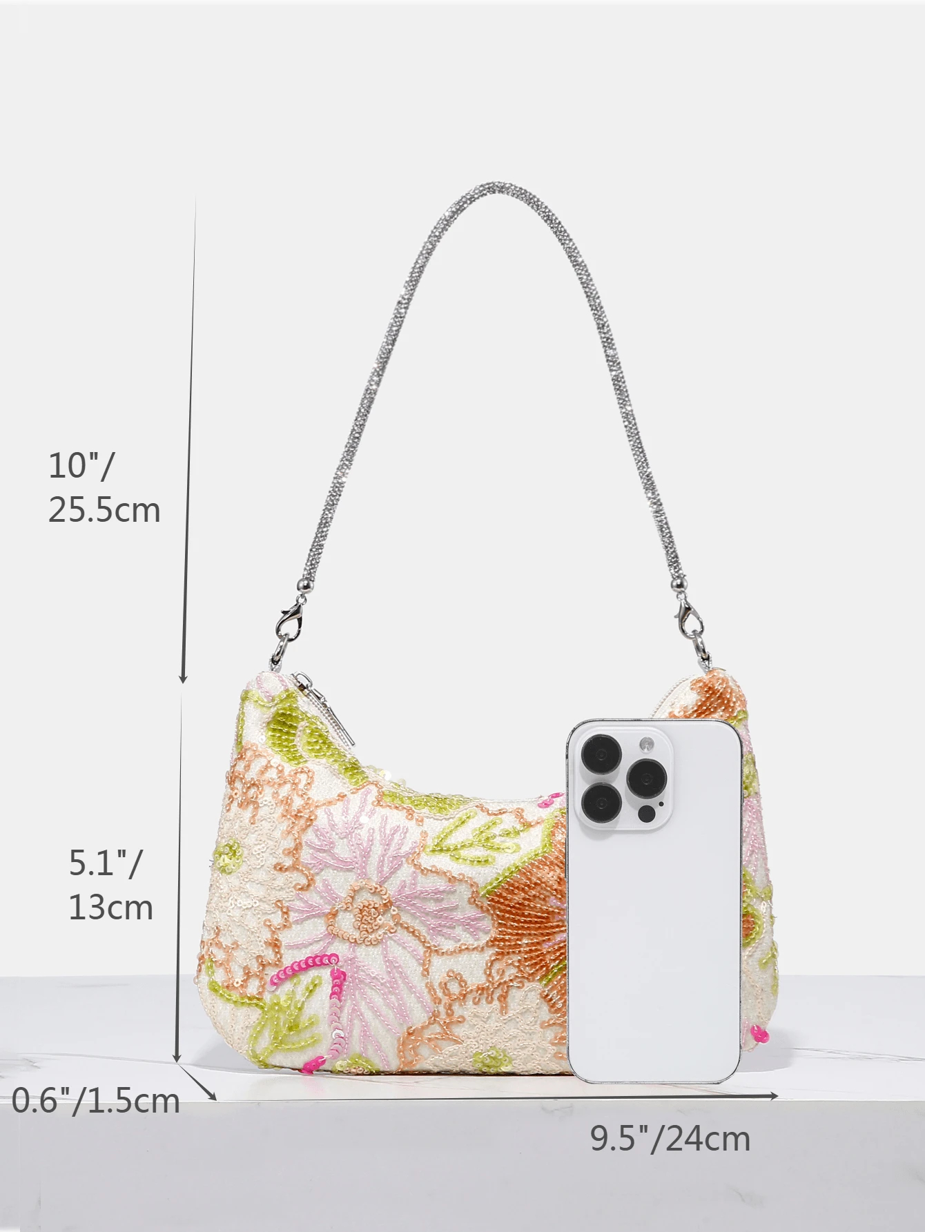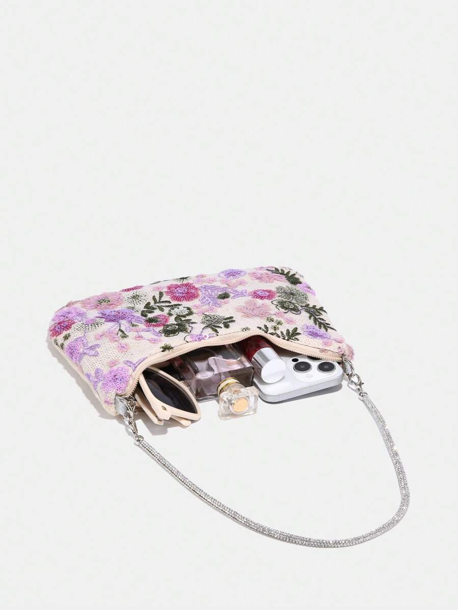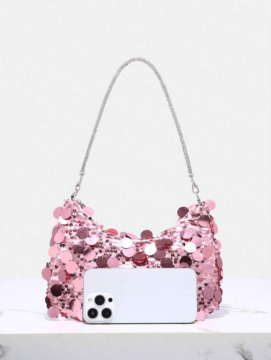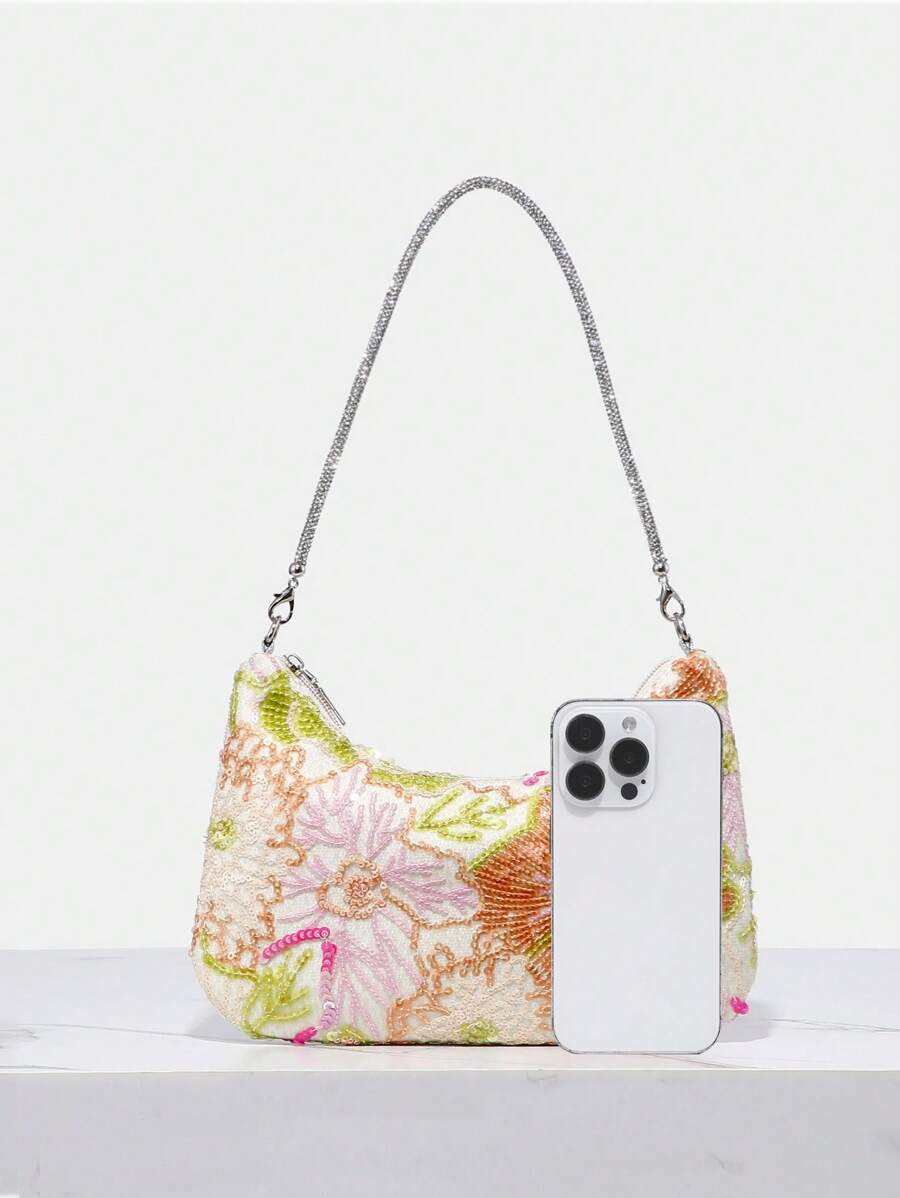 حقيبة خفيفة، رسمية للأعمال، مزينة بالراين ستون، تصميم سلسلة، حقيبة شفافة مزينة باللؤلؤ الاصطناعي