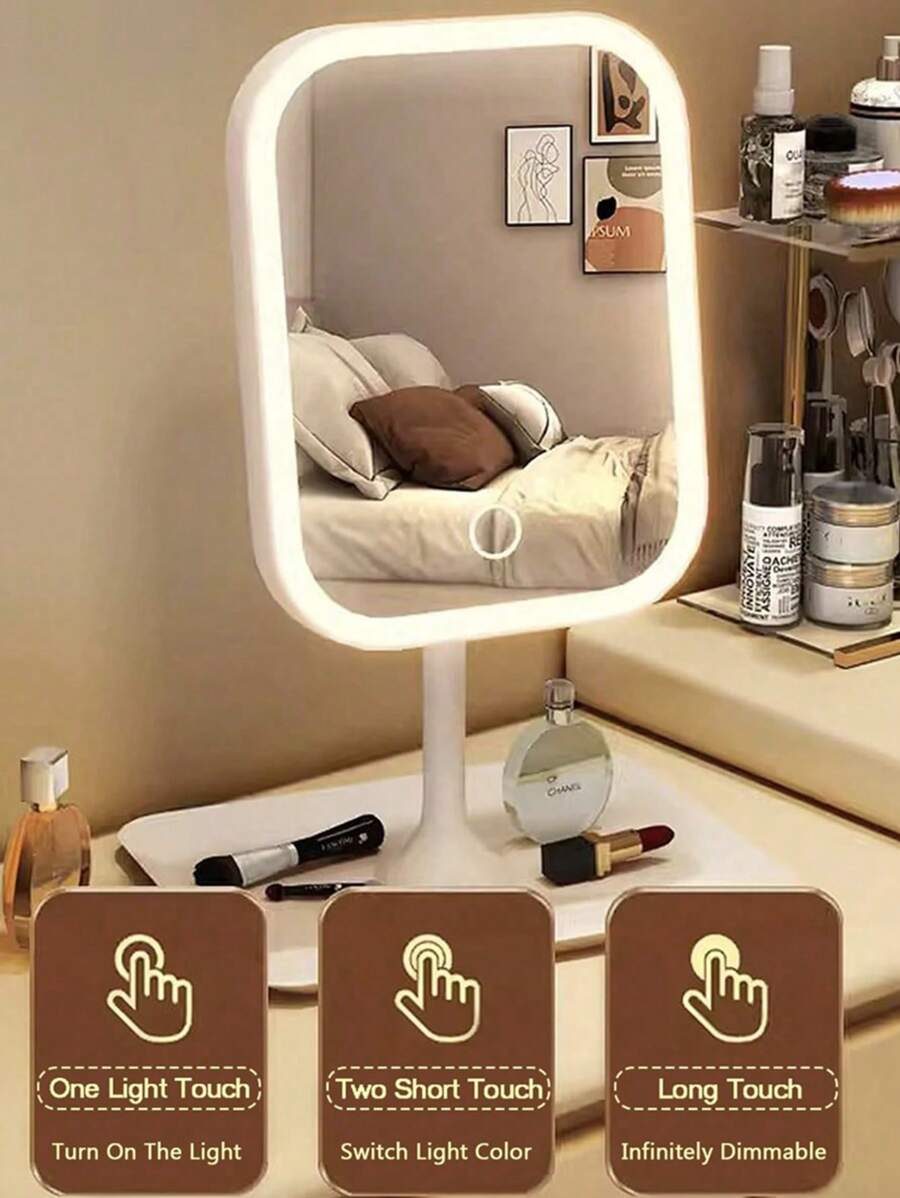 مرآة مكياج بإضاءة LED، مرآة زينة قابلة للشحن على سطح المكتب مع أضواء، 3 أوضاع إضاءة، تحكم باللمس، قابلة للتعديل في السطوع، مرآة تجميلية محمولة مضاءة